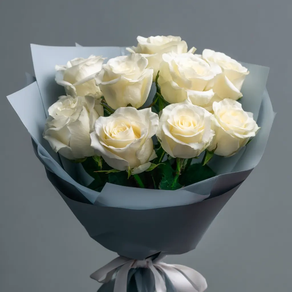 Естественная красота и благородная простота. Букет с белыми розами без излишеств — чистый акцент на чувствах и искренности. Отличный выбор для поклонников сдержанных решений.