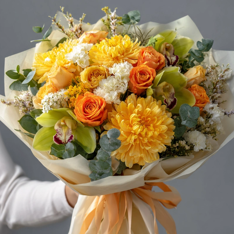 ГлавнаяКаталогБукетыХризантемыБукет с хризантемами «Классика тепла»