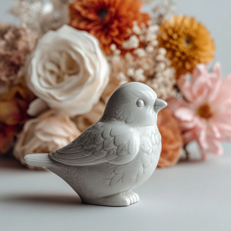 Очаровательная керамическая птичка станет изящным дополнением к любому букету или цветочной композиции. Этот миниатюрный сувенир символизирует нежность и приносит в дом уютное настроение.
