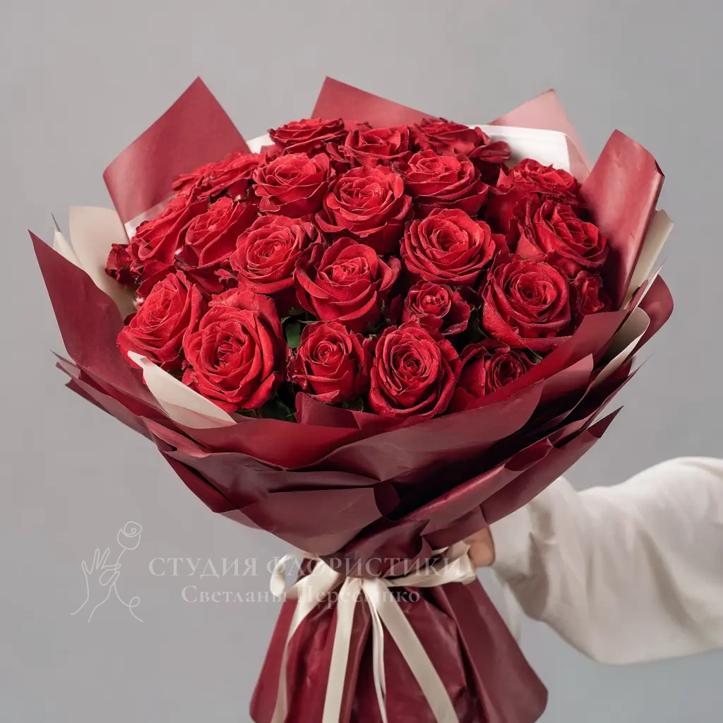 Этот букет зажигает эмоции. Алые розы — как искры чувств, которые невозможно скрыть. Идеален для первого свидания, годовщины или романтического сюрприза.