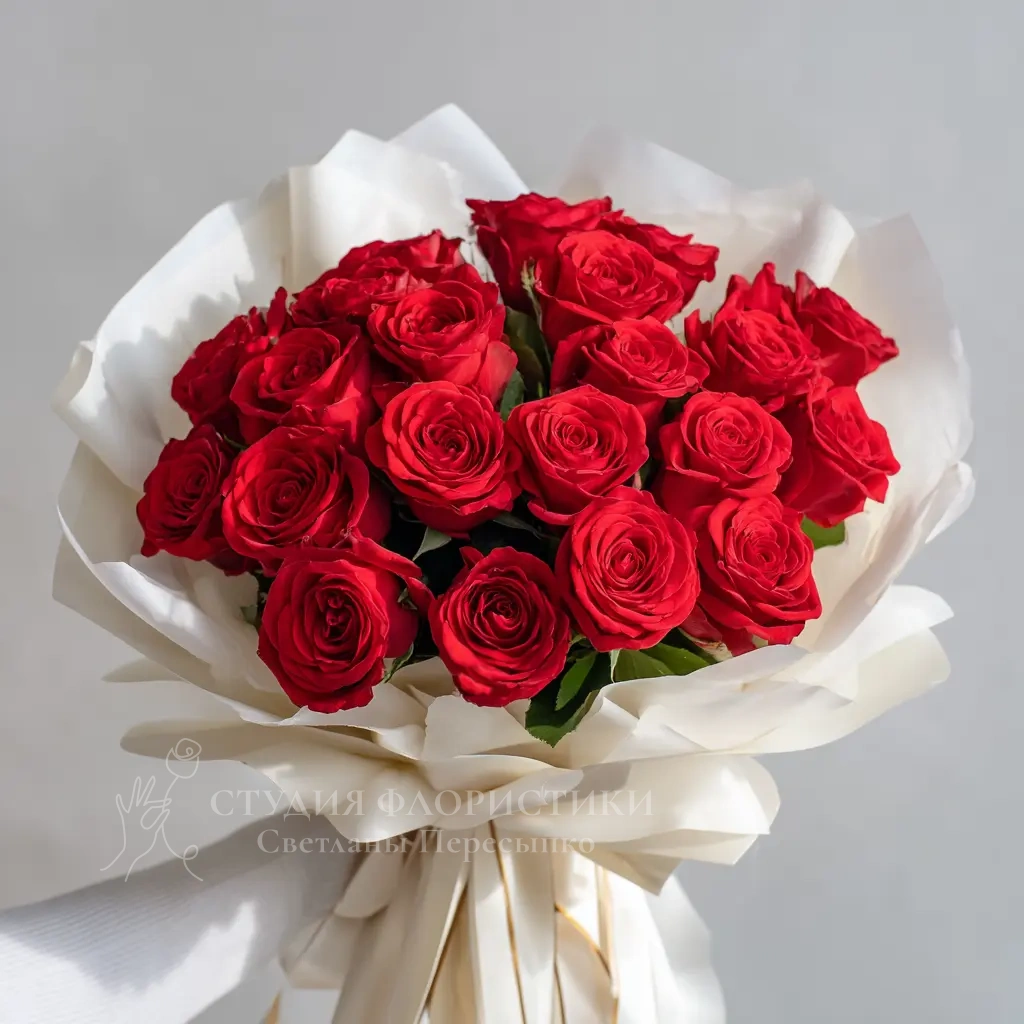 Если слова не нужны — этот букет скажет всё за вас. Алые розы в классической композиции передают тепло признания и силу любви. Стильно и со вкусом.